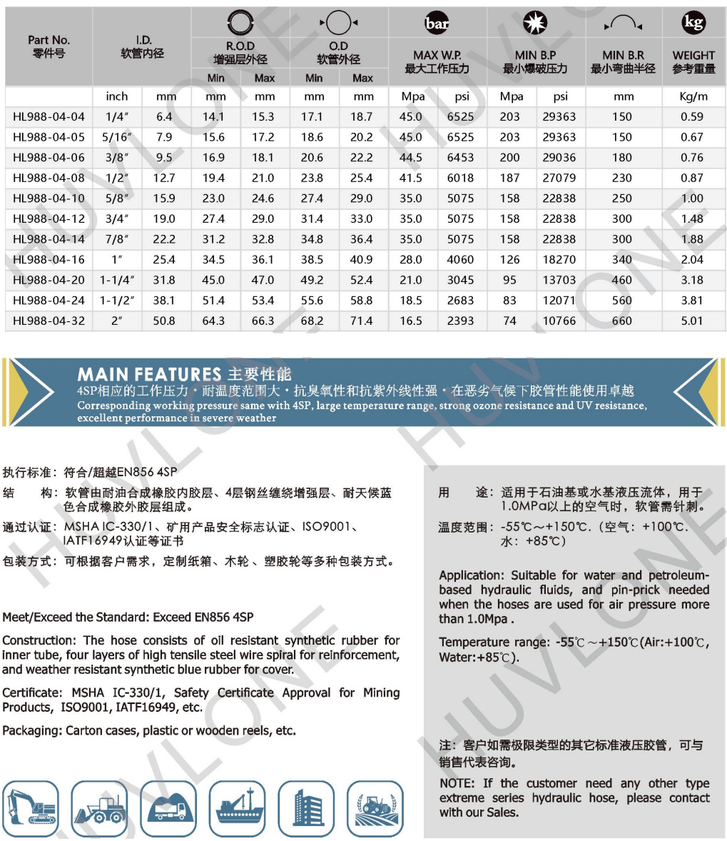 產(chǎn)品用途:適用于石油基或水基液壓流體,用于1.0MPa以上的空氣時(shí),軟管需針刺。