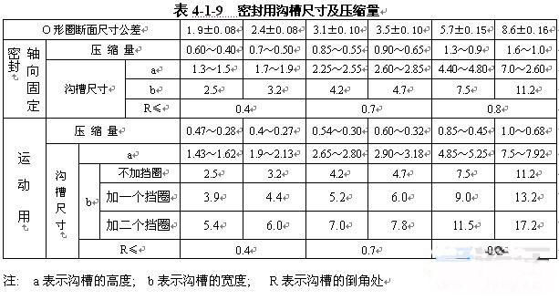 因為O形橡膠密封圈是安裝在各種溝槽中使用,現(xiàn)將安裝溝槽情況列于表4-1-3。