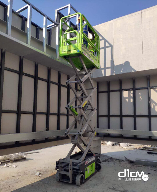 金禾租賃的中聯(lián)重科剪叉式高空作業(yè)平臺正在施工